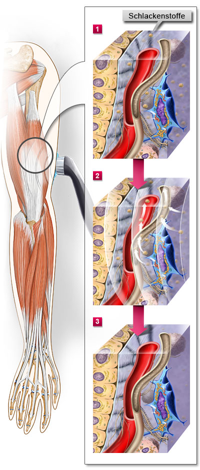 2. Prozess des Abtransports und somit der Ausleitung der Schlackenstoffe wird durch die Vital-Wellen-Therapie unterstützt und angeregt.