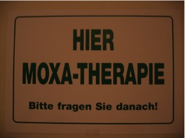 Die Moxibustion/Moxatherapie ist ein Teilbereich der chinesischen Medizin. Hierbei wird mit einer Moxazigarre Wärme erzeugt, die mittels eines Moxahalters in einen Akupunkturpunkt eingegeben wird. Die Therapie kann unabhängig einer Akupunkturbehandlung erfolgen. Die Nadelung ist nicht zwingend notwenig. Es werden genauso gute Resultate über die Moxibustion erzielt wie bei einer Nadelbehandlung. Zudem führt die Moxibustion dem Körper Energie zu, und löst Blockaden und Verspannungen. Über bestimmte Akupunkturpunkte werden Meridiane ausgeglichen und somit Organische Leiden gelindert. Bei allen Tieren wird der Rücken (Blasenmeridian) mitbehandelt, was eine tiefgreifende Wirkung auf den ganzen Organismus hat.
